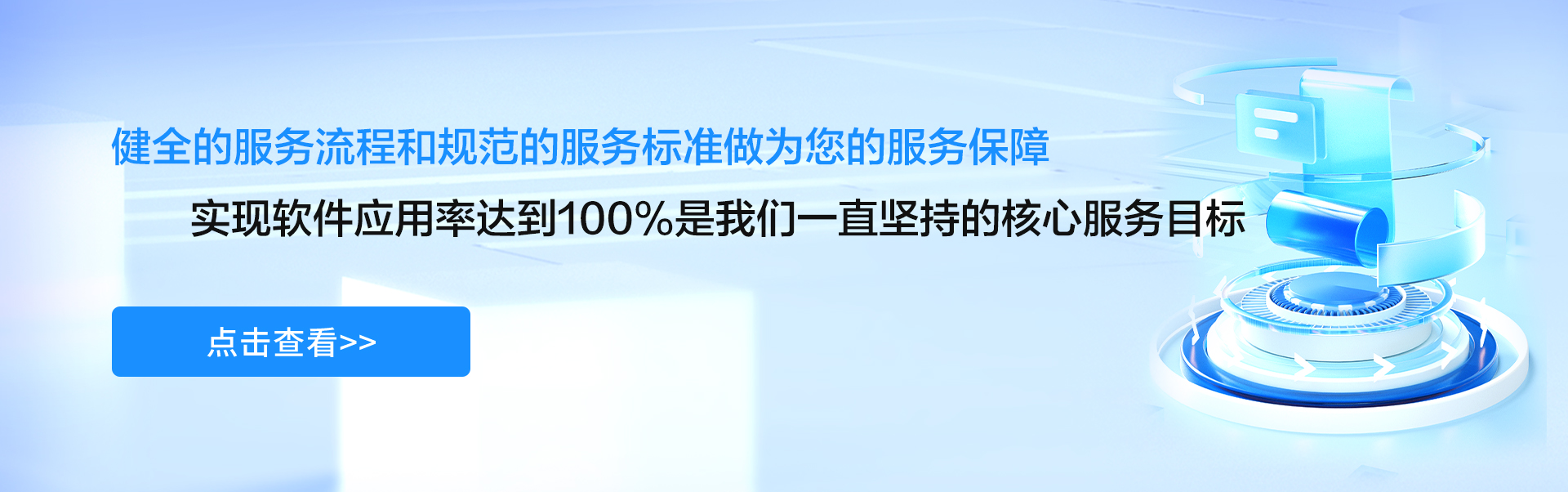 健全的服務(wù)流程和規(guī)范的服務(wù)標準做為您的服務(wù)保障!實現(xiàn)軟件應用率達到100%是我們一直堅持的核心服務(wù)目標!